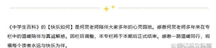 2025年12月26日,《中学生百科》杂志公众号发布公告,领略晓谕何炅开设的《酣畅何如》专栏因栏目调度停更,这段横跨26年的温雅伴随画上句点。音讯在2026年1月初赶快发酵,#何炅写了26年的专栏停更了#话题冲上热搜,多数网友留言追思被仁爱看管的芳华时光,直呼“破防了”。