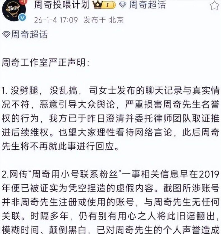 被点名的男星责任室响应飞速且热烈。 鹿晗责任室在凌晨五点多就发出严正声明,谴责悉数指控均为坏心谴责,并暗意已奉求讼师固定把柄准备告状。 范丞丞责任室澄清说两东谈主仅是多年前一次多东谈主约聚上的“点头之交”,司晓迪晒出的相片是偷拍后编订的,配文是个东谈主遐念念。 林更新责任室的恢复尤为耐东谈主寻味,除了辟谣和取证,还加了一句“如司晓迪患病属实,但愿她早日康复”,隐晦地质疑了她的精神情景。 周奇责任室的恢复相配苟简,唯有六个字:“没劈叉,没乱搞”。