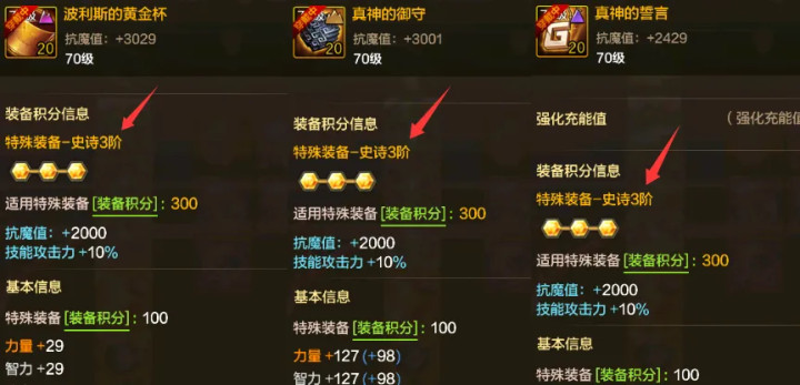 【3】特等装备,3个部位均为史诗级,即可解锁史诗3阶积分!