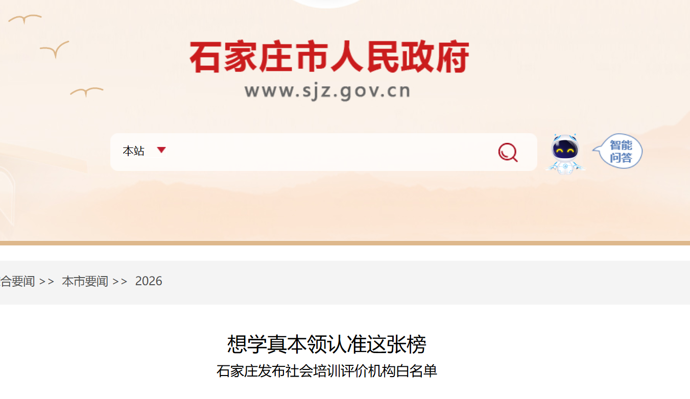 近日,石家庄市东说念主社局负责对外发布《石家庄市2026年社会培训评价机构白名单及开展评价的功绩(工种)目次》。这份“白名单”共包括98产品备天禀的社会培训评价机构,涵盖116个功绩(工种),为全市作事家提供泰斗、措施、精确的手段普及通说念。