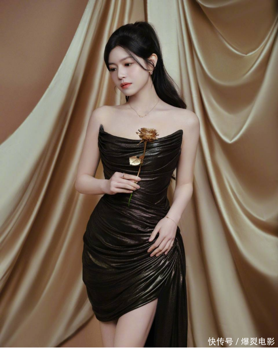 战胜的规划微妙诓骗了颜色的散布与材质的碰撞。大面积艰深的玄色丝绒或缎面,勾画出她唯妙的身体弧线,如同夜色般包裹着优雅的空洞。金色则当作点睛之笔,或以开放的鎏金线条嵌入于裙身,勾画出雅致的纹样;或以妍丽的亮片、刺绣体式,汇聚于上半身或腰间,在行走间跟着光影流转,熠熠生辉。尤其是那威望恢宏的拖尾,在死后铺陈开来,如同张开的丽都羽翼,每一步都踏出女王般的温情与气场。这身装饰,早已越过单纯的“漂亮”,它是一件充满符号意旨的“战袍”,宣告着她的高大、自信与无可替代的存在。